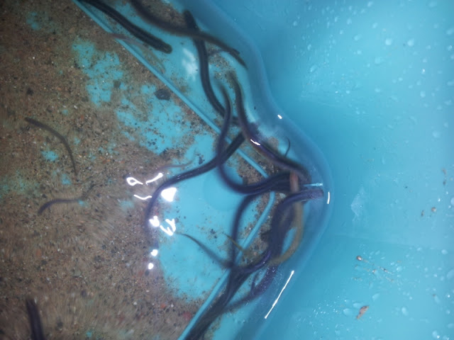 Well, I am finally officially done the physical work of my experiment. These were the lamprey left over that I had to bring back from the Department of Fisheries and Oceans building to the University